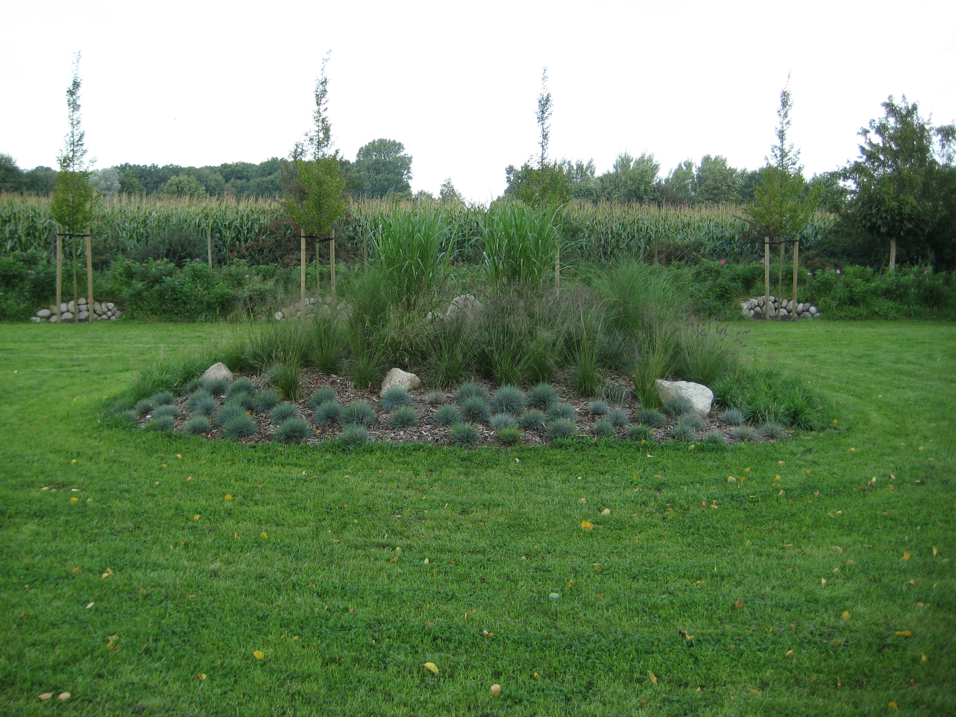 Hier war unsere norddeutsche Herkunft eindeutig ein Vorteil: Ein Friesenwall ist ja in Norddeutschland sehr beliebt und passt sich harmonisch in die Landschaft ein. Die weitere Gestaltung orientierte sich streng an der vorhandenen Bausubstanz, um das Gesamtbild zu vervollkommnen.